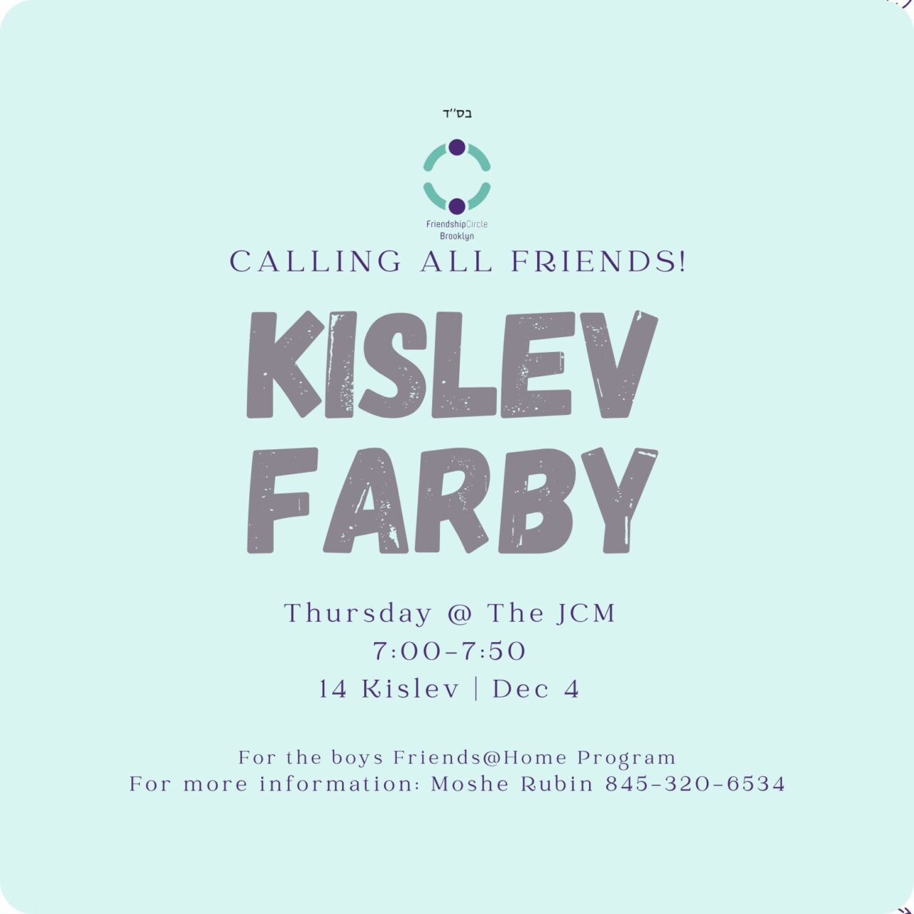 The Boys Friends@Home division is invited to a Kislev Farbrengen. Thursday, 14 Kislev | December 4