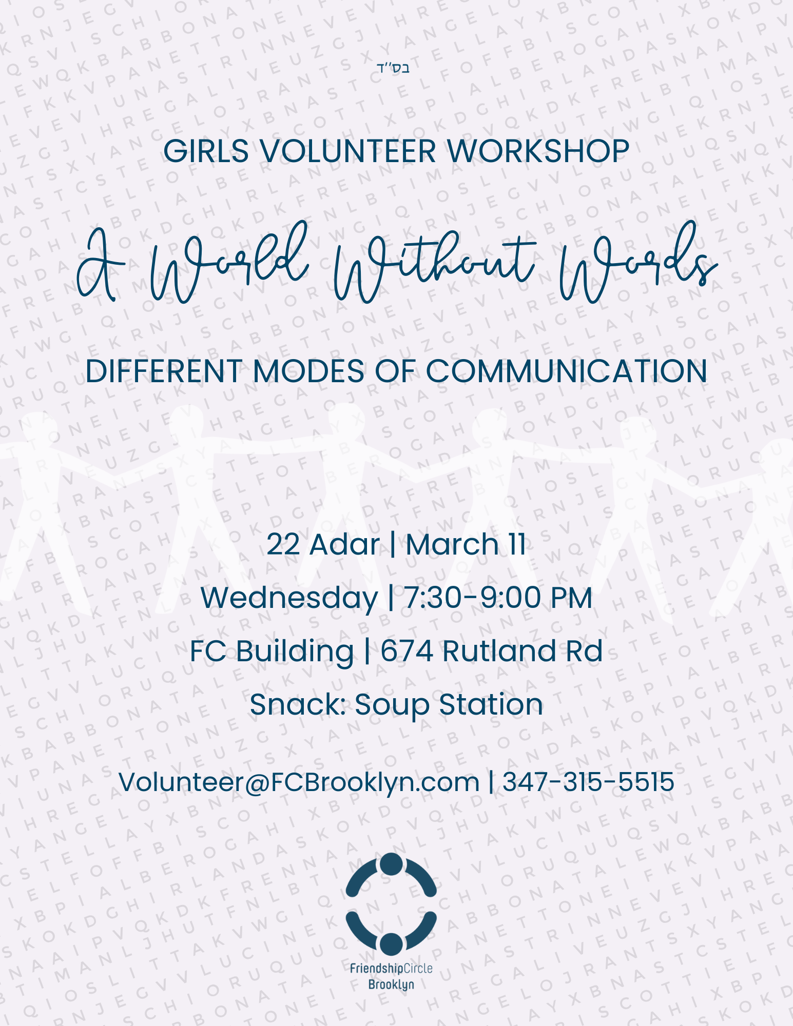 All high school girl volunteers are welcome to a workshop: A World without Words.