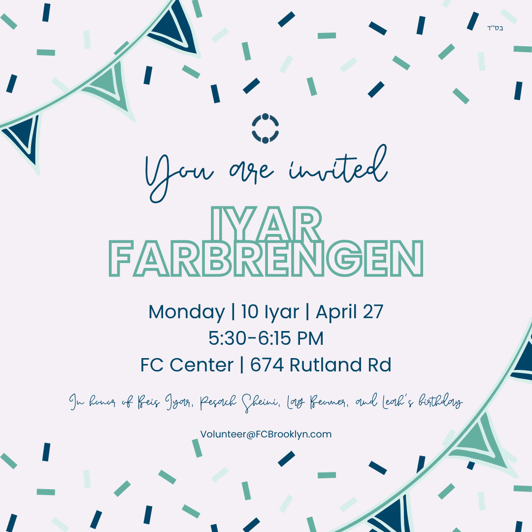 Children in the Friends@Home girls division are invited to an Iyar Farbrengen with their volunteers. Games, activities, crafts, stories, and lots of fun!
