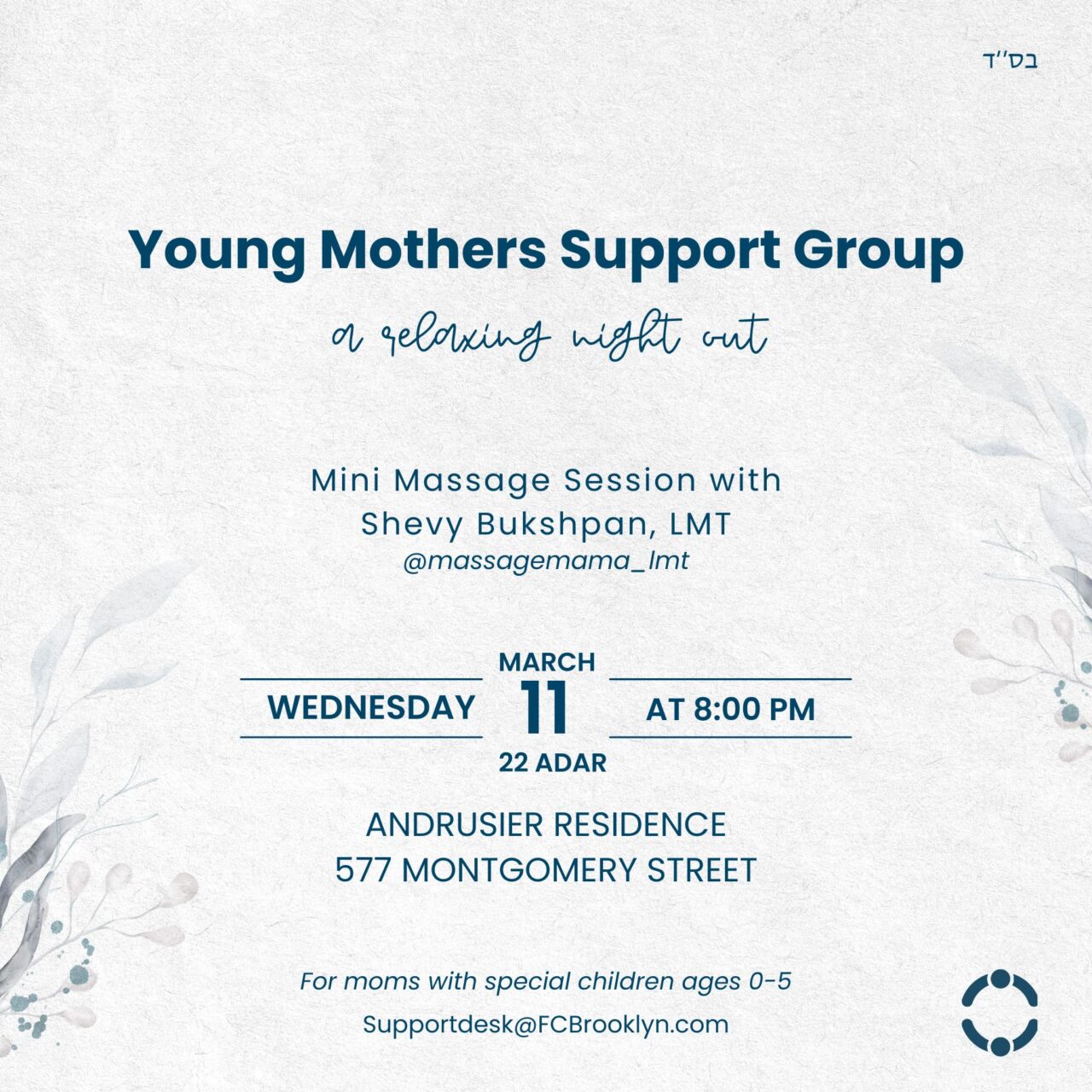 Young mothers are invited to a relaxing night out featuring a mini massage session with Shevy Bukshpan, LMT