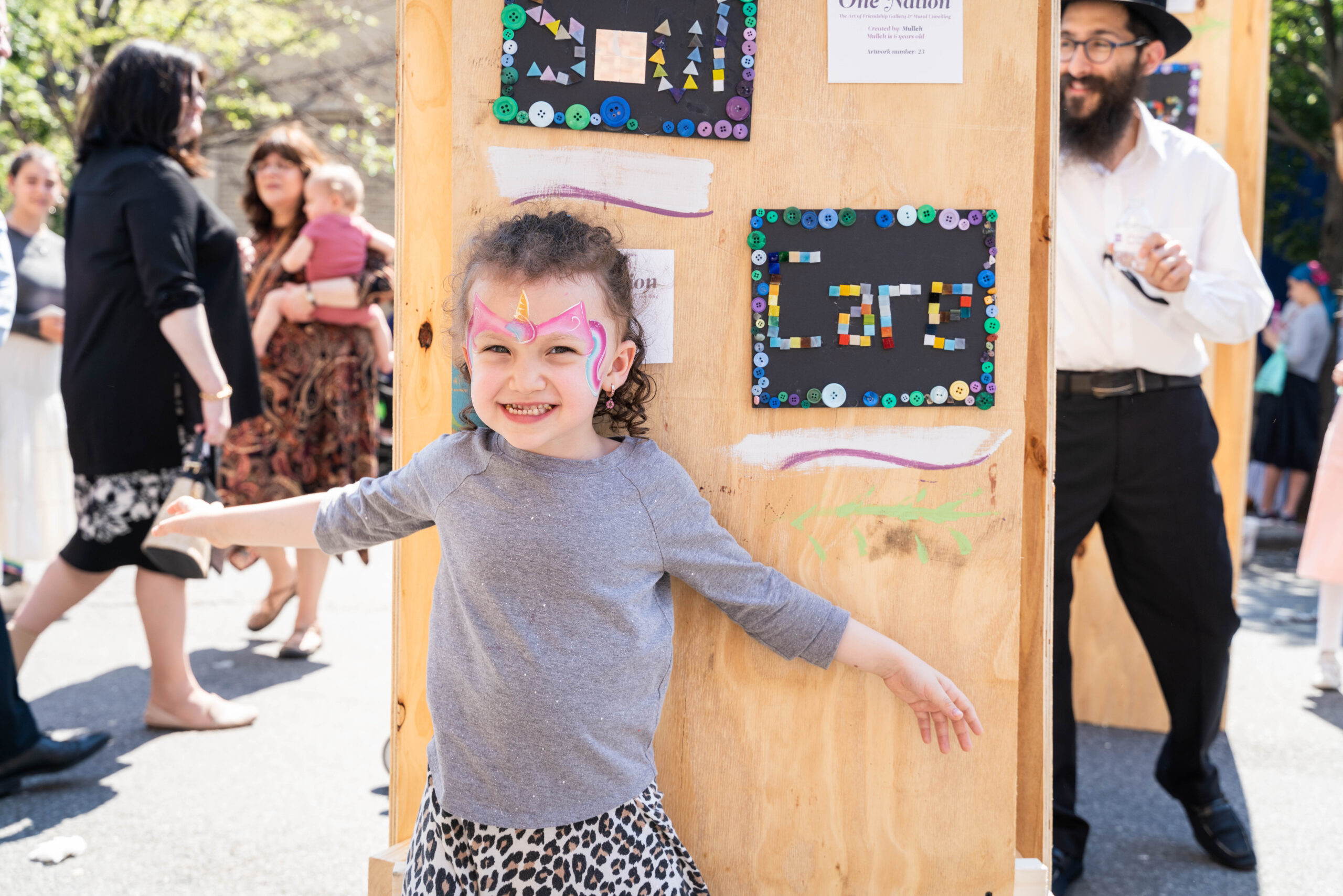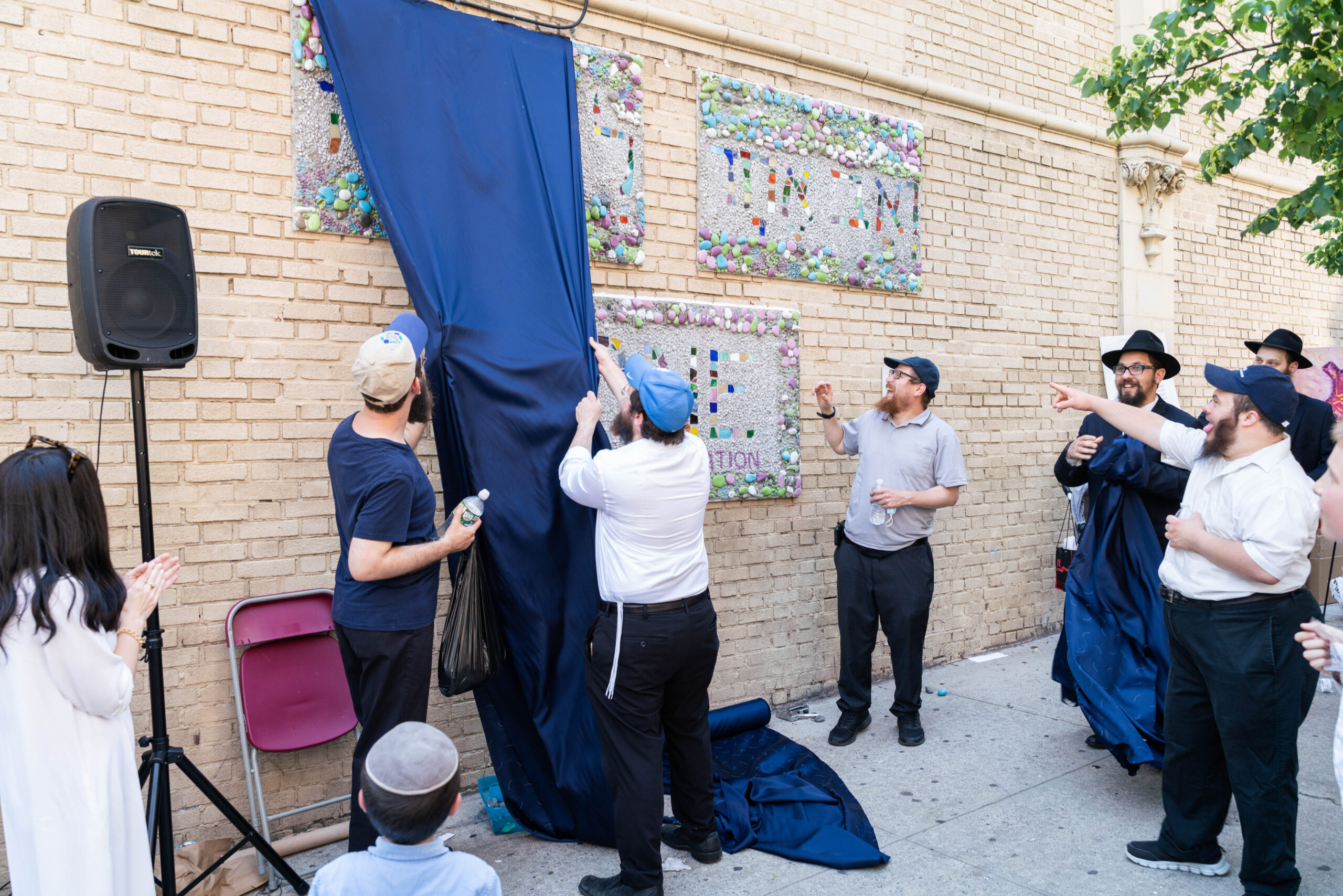 Special thanks to the Spritzers for hosting our mural on their building, the NYPD for closing the street, all the volunteers who came to help out at the event, and to Rochel Karp and Mimi Garelik for all of their hard work making this event possible.
