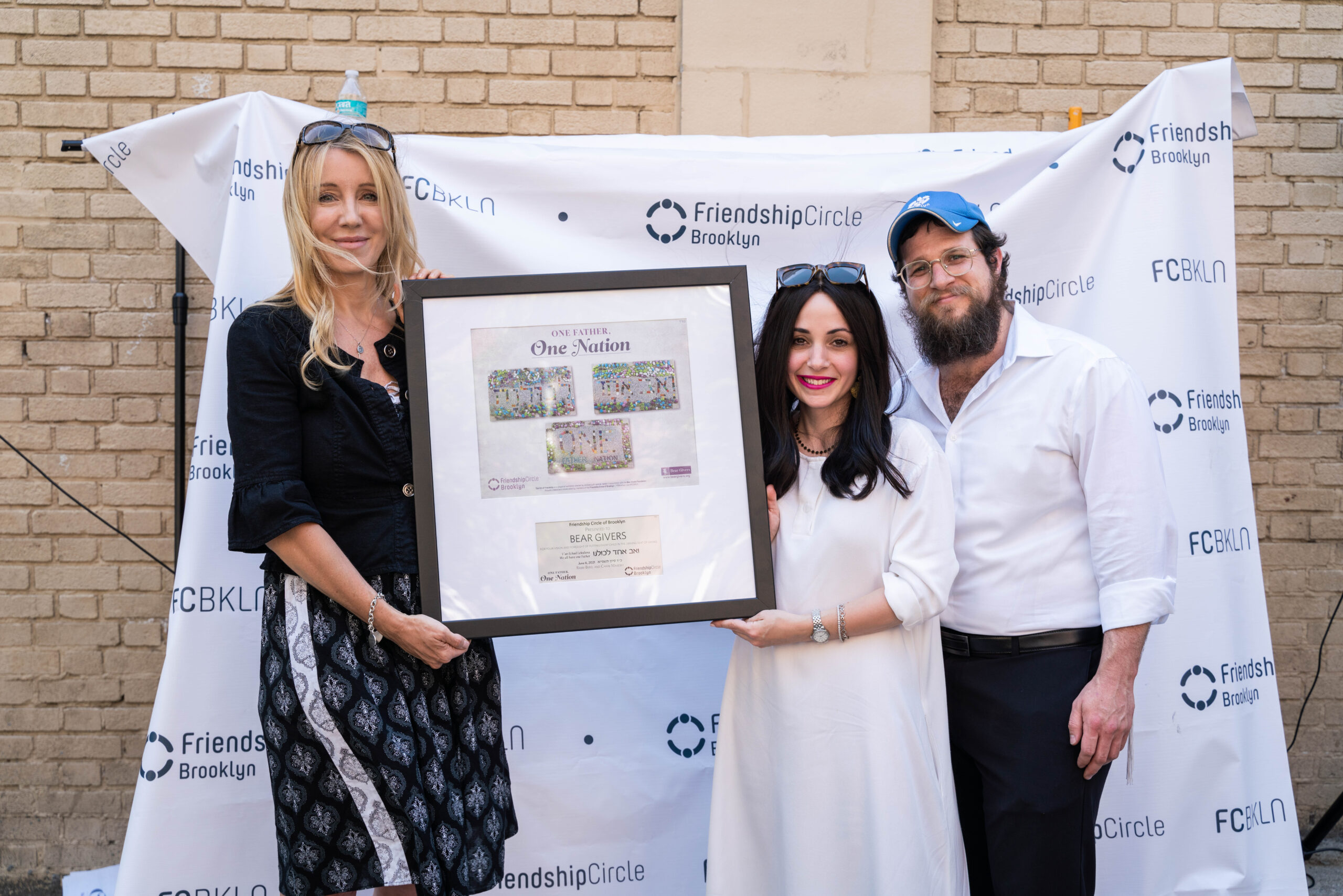 The mural is a collaborative piece created by participants of the Friendship Circle, under the direction of artist Rosie Goodman (nee Benabou). The message of the mural is “One Father, One Nation.” A beautiful video was created by artist Chana Laber explaining the deep significance behind this message.