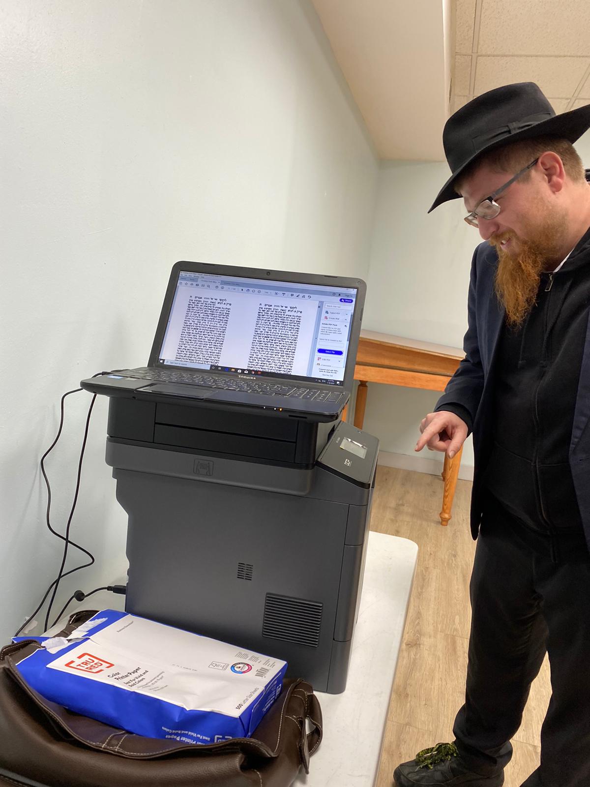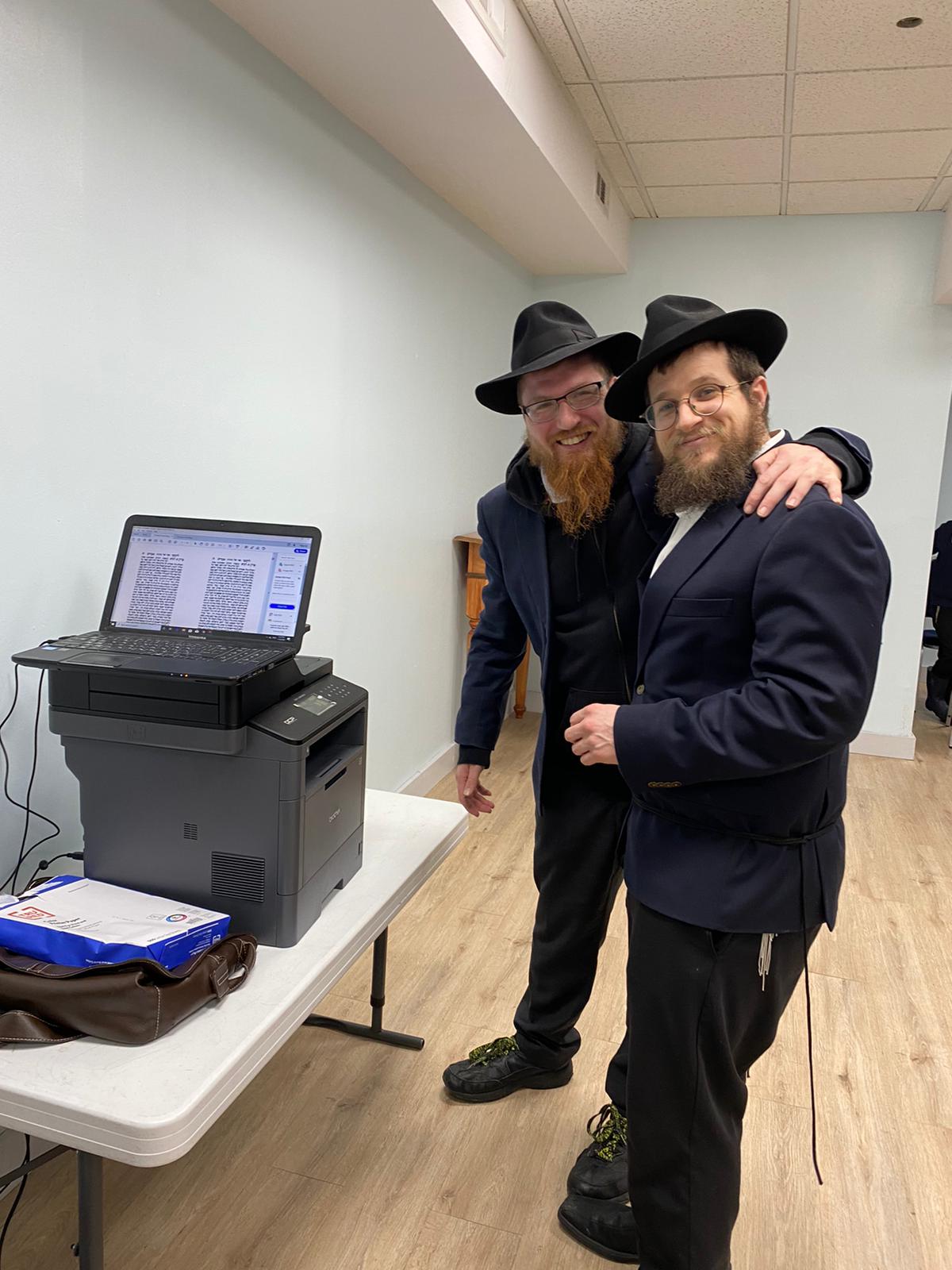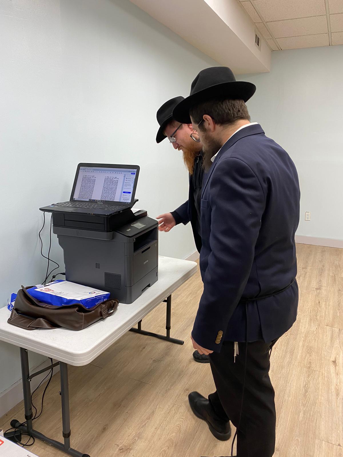 Rabbi Berel Majesky shared words on inspiration with the crowd, explaining the importance of the printing. He related that when the Tanya was first printed in Braille, the Rebbe emphasized the important breakthrough it represented – bringing the teachings of Chassidus to people who had never previously had the opportunity to taste this spiritual knowledge independently. As per the Rebbe’s instruction, the portion of the first Perek of Tanya was taught by veteran Tanya teacher Rabbi Chaim Majesky. Yisroel Brikman, Gabbai of the FC Minyan, was honored with printing the first page of the Tanya.