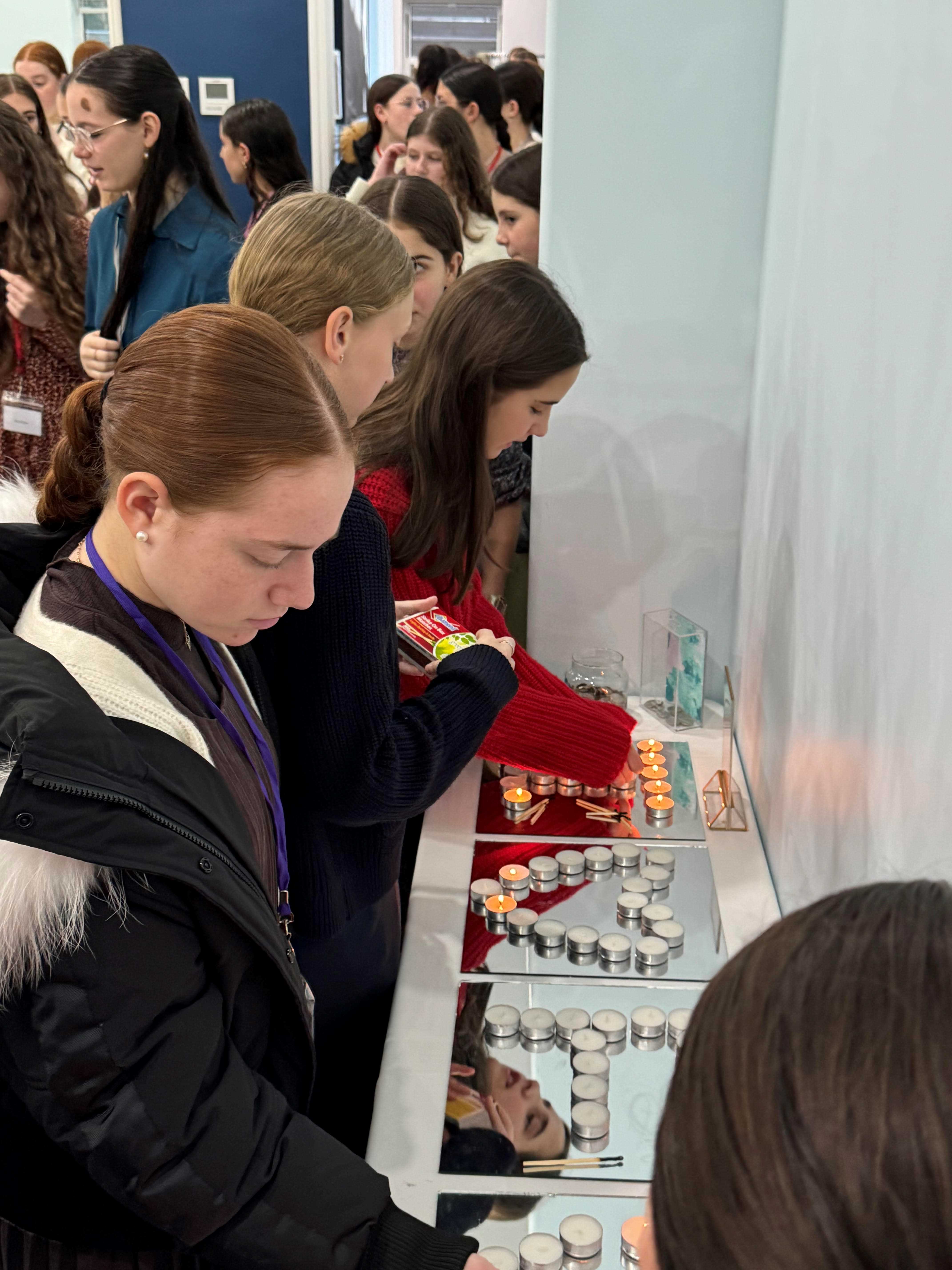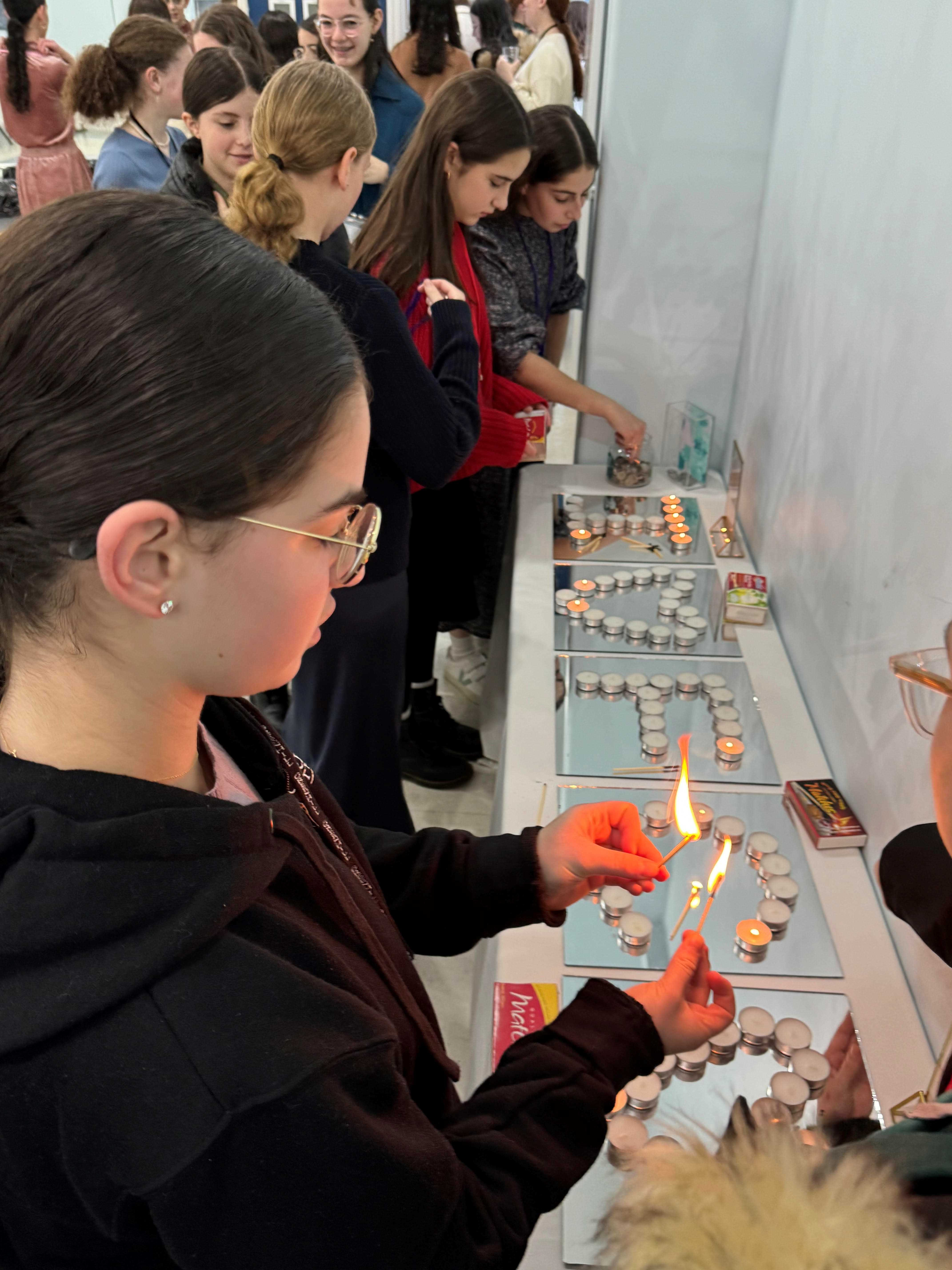 Program then led into Kabolas Shabbos, led by Beis Rivkah 12th graders Aidel and Yehudis Heller who have volunteered consecutively for three years with the same family.