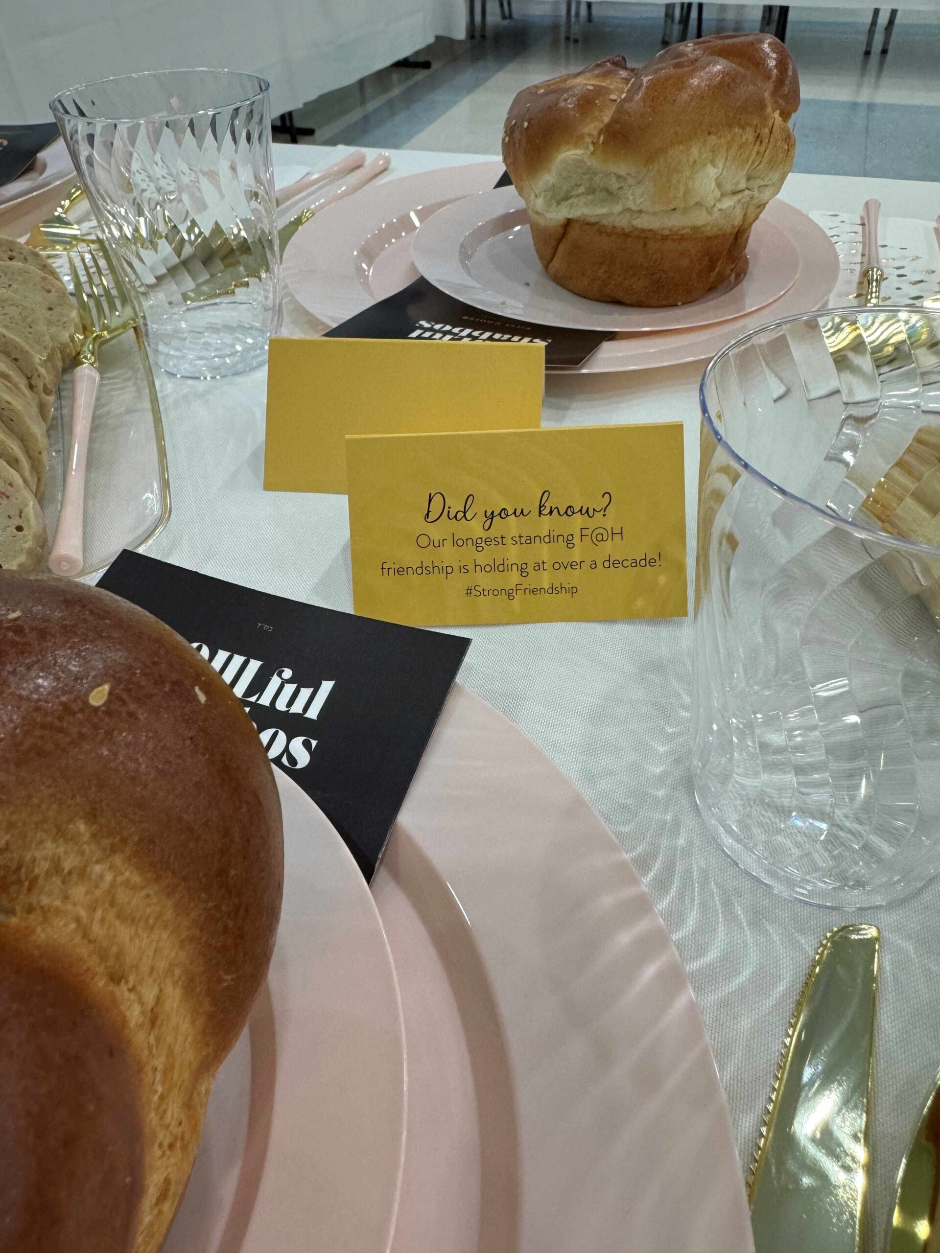 As the girls moved in to the Mussie Sputz Social Hall they were met by gorgeously set tables. The girls found their seats and the Seudah began. Imagine singing with so many HS students – Shalom Aleichem and Aishes Chayil rang through the room. Dvar Torah was shared by Soshy Wagner – a Bnos Menachem volunteer. The girls warmly welcomed FC mother Mrs Dina Sasonkin, and were humbled by her story and her strength. She shared about the impact of her FC volunteers over the years, the connections they made and how instrumental they were to her son’s social life and growth. The Niggun of Anim Zemiros floated through the room, followed by many loved camp songs.