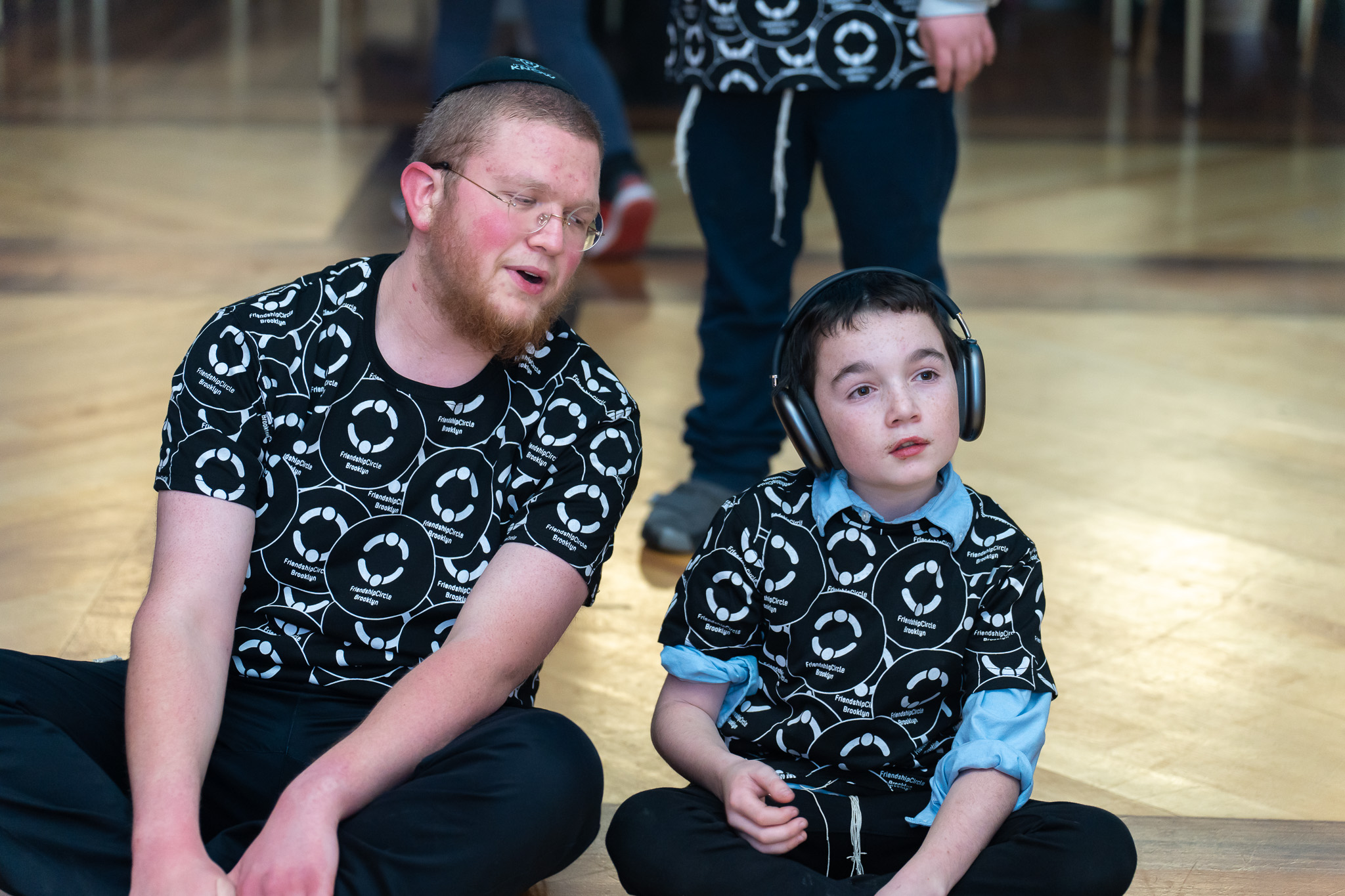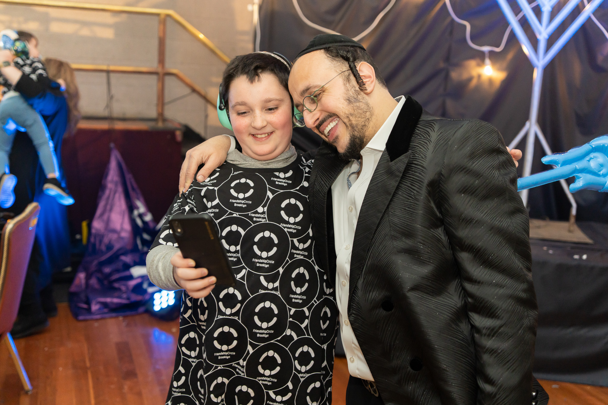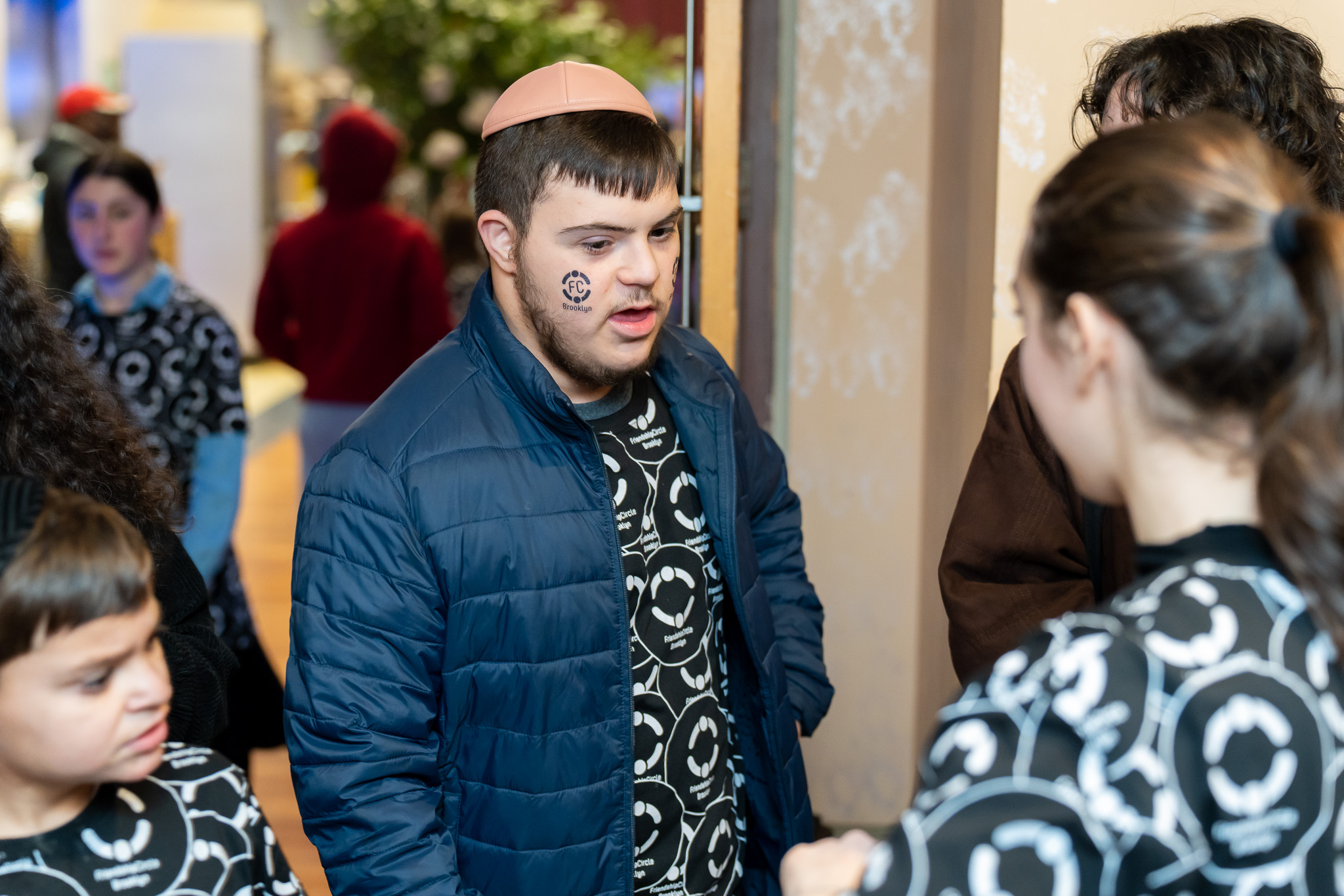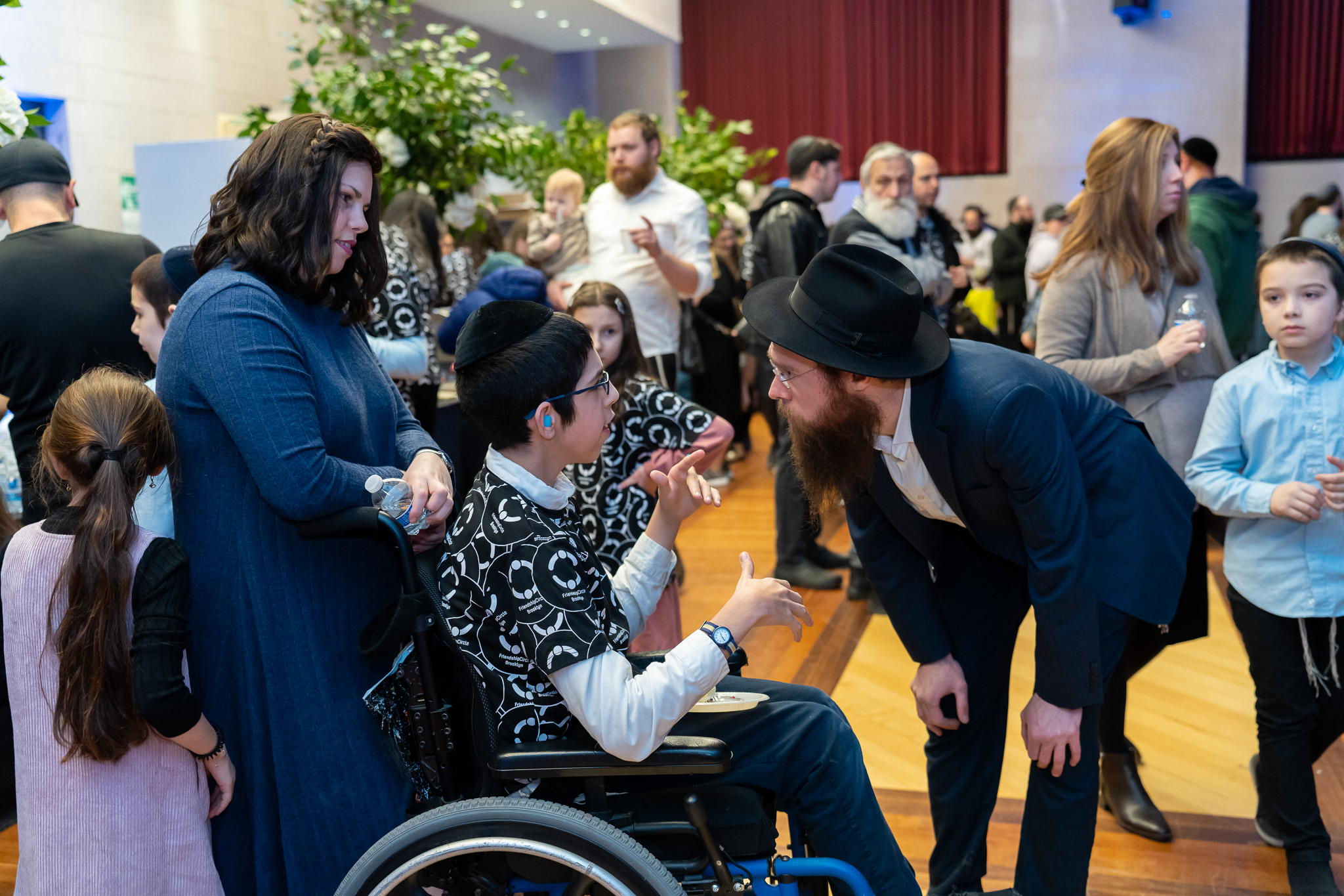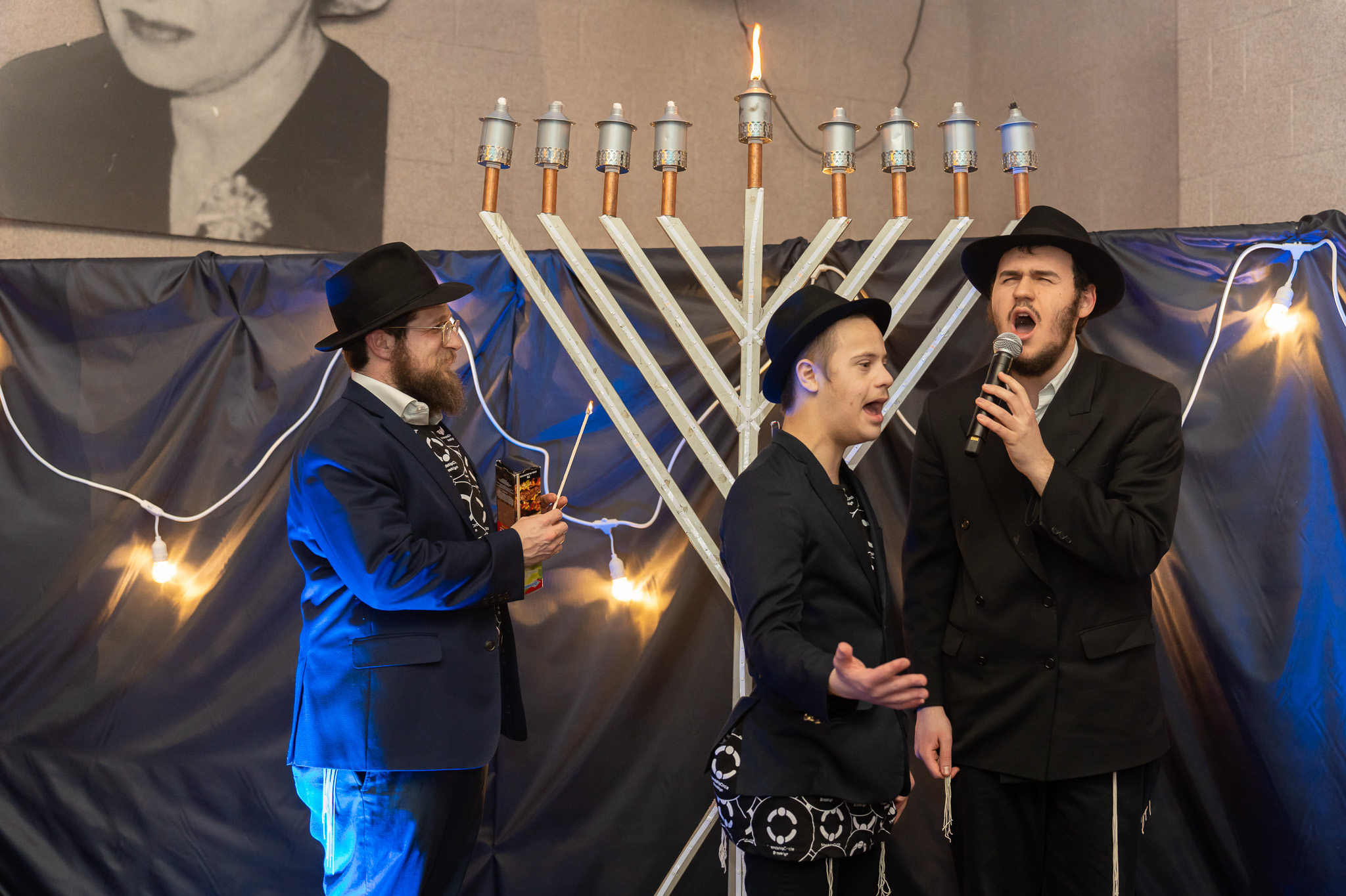 It’s not a Hakhel without the 12 Pesukim; parents looked on as their children with special needs were each called up by FC Director Rabbi Berel Majesky to recite the Pesukim and give Tzedaka. The Menorah was then lit by Friendship Circle’s own FC Minyan Chazzanim – Levi Harlig and Boruch Schneur Chein.
