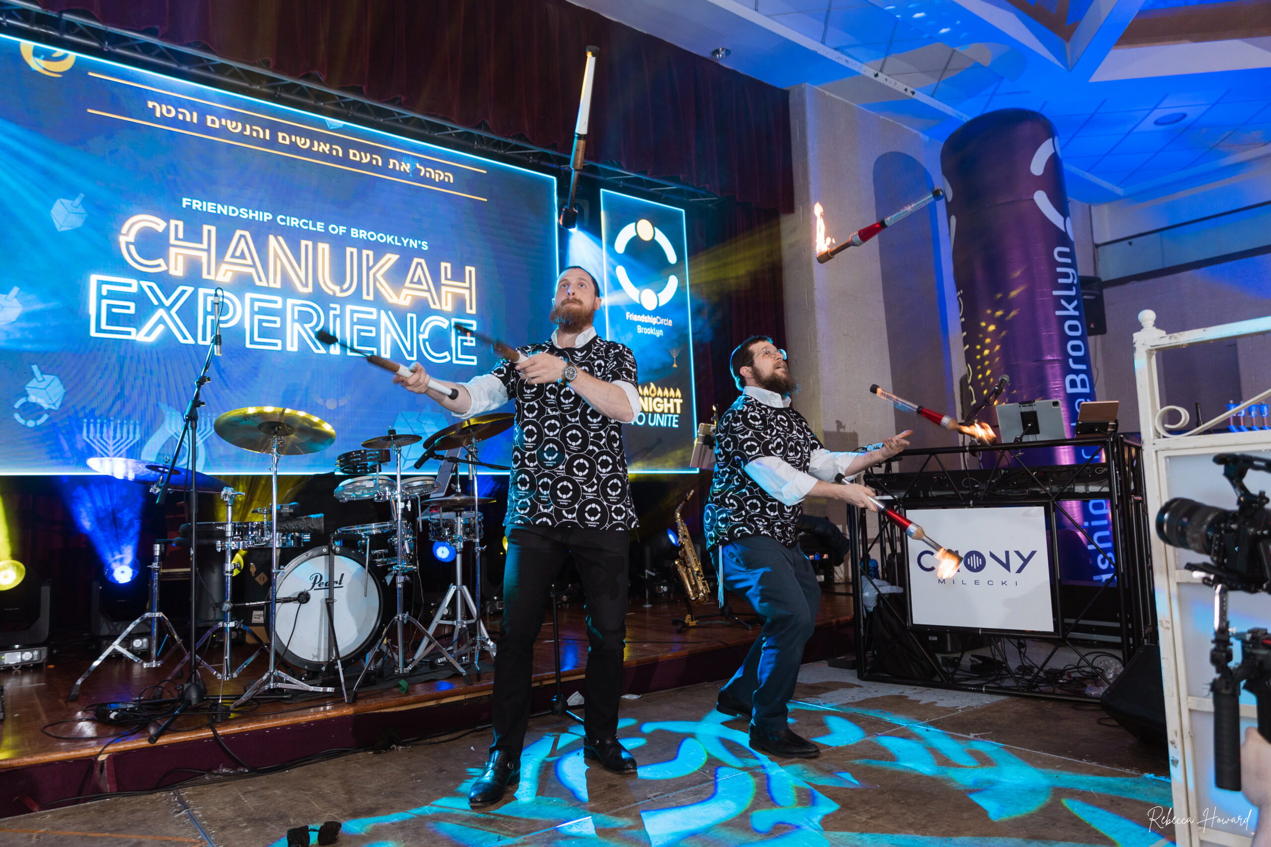 FC families enjoyed an exclusive concert featuring Lipa Schmeltzer accompanied by Choni Milecki and co. Complete with customized FCBKLN Chanukah t-shirts, step-and-repeat photo booth, and a giant DIY Menorah, every detail was thought through and organized. From massive light up balls, to a delicious buffet of Chanuka treats, it was a night of pure joy and unity amongst the families.
