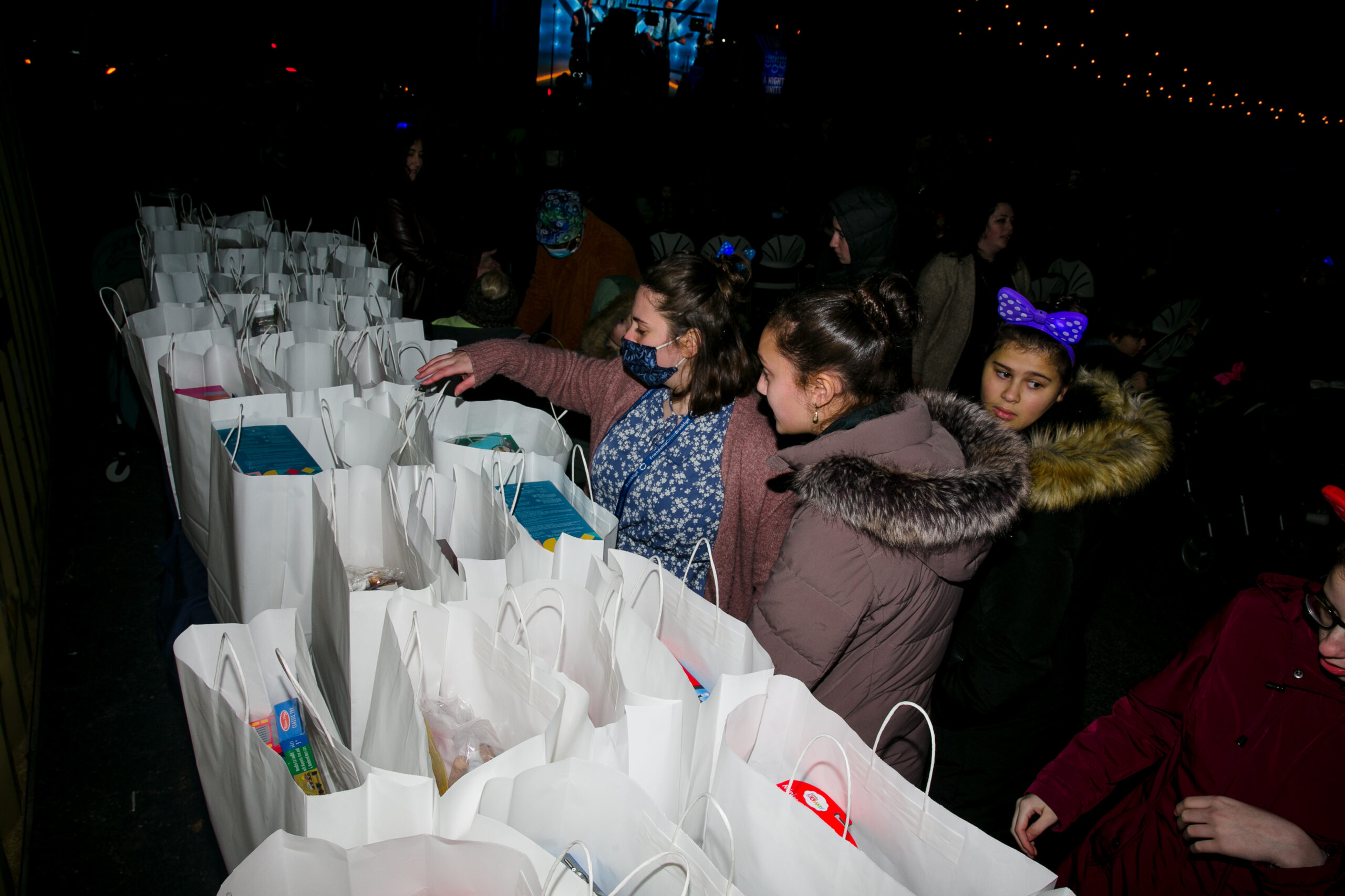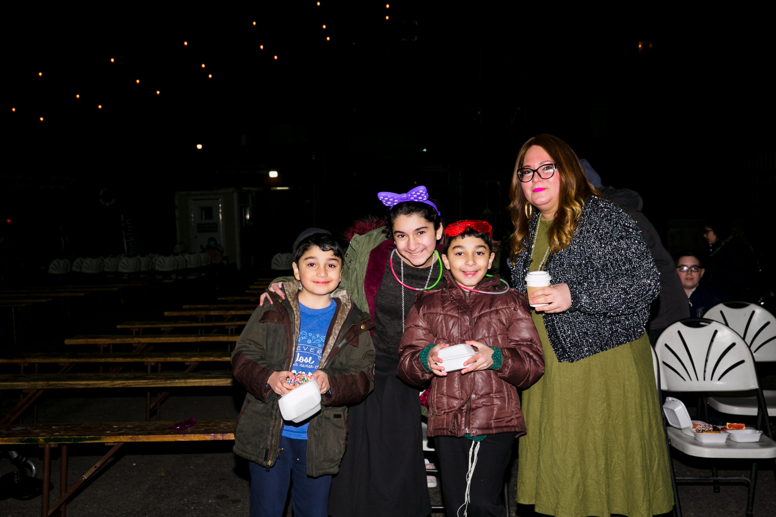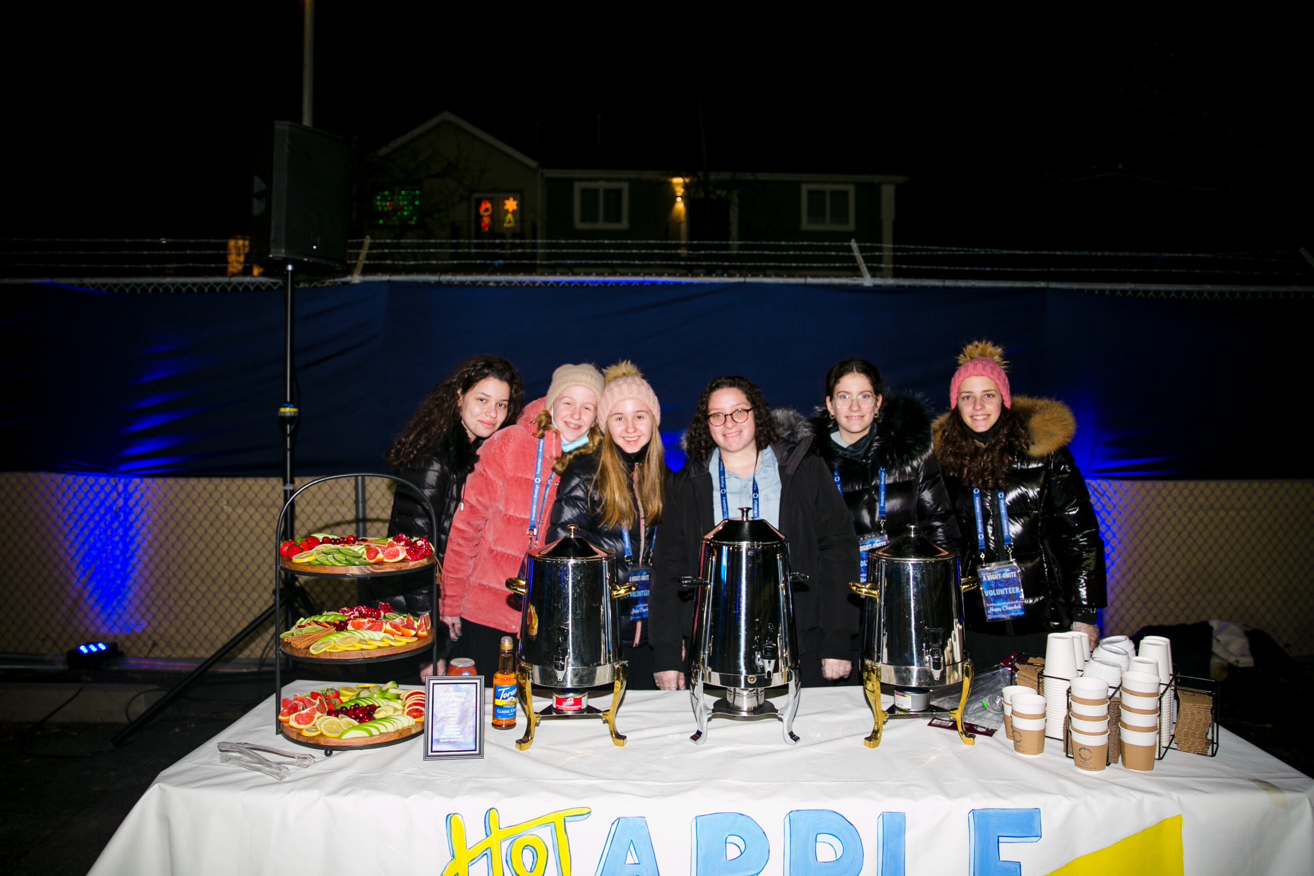 Food… it’s not Chanukah without it! FC added something new to their Chanukah party menu to keep everyone warm – a hot apple cider bar with a wide array of toppings and additions to choose from! Orders are placed for over 550 latkes and donuts each, tons of cases of water bottles and seltzer cans, hundreds of paper goods, and gallons of apple cider. More orders go out for hundreds of fun light-up headbands, glasses, and necklaces; over 700 custom FC neck gaiters and 250 crisp dollar bills for Chanukah gelt.
