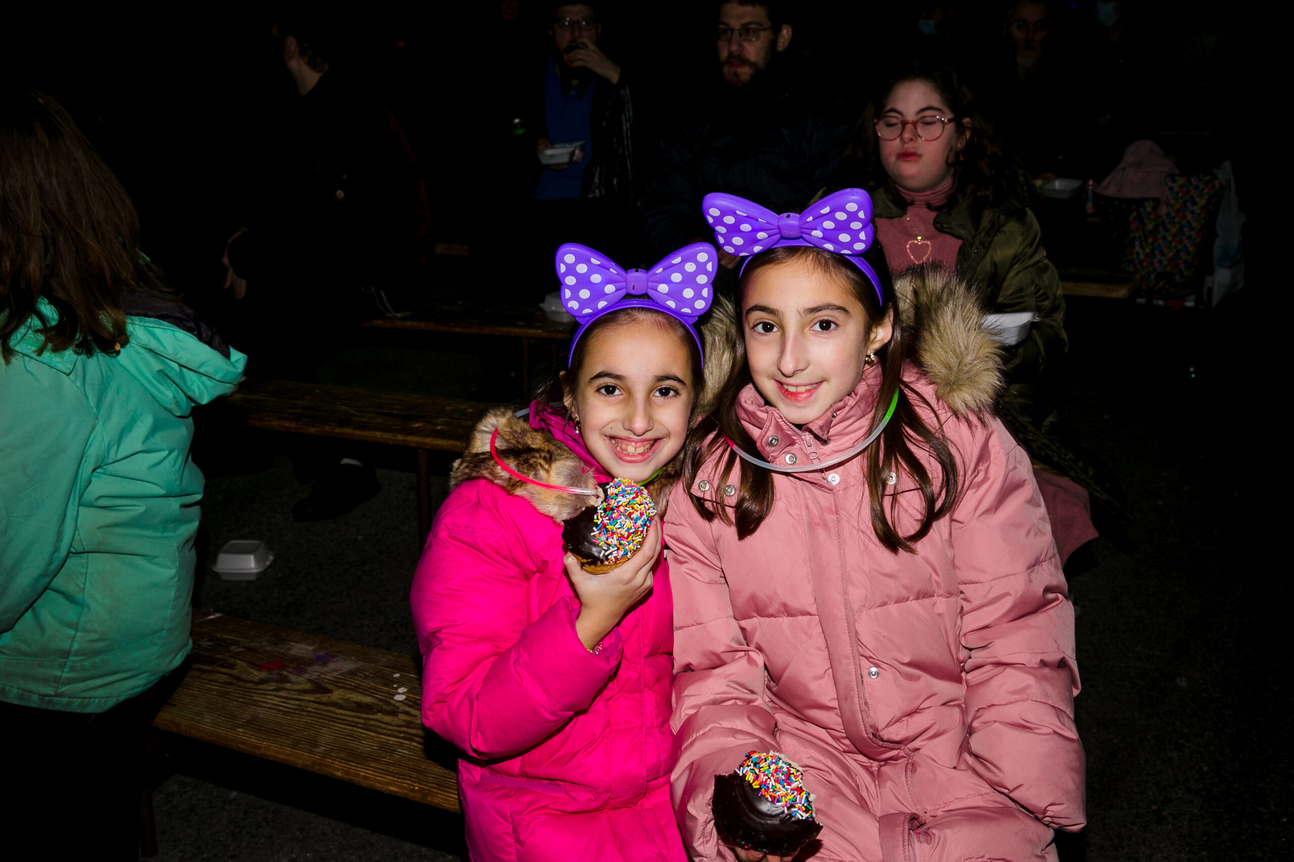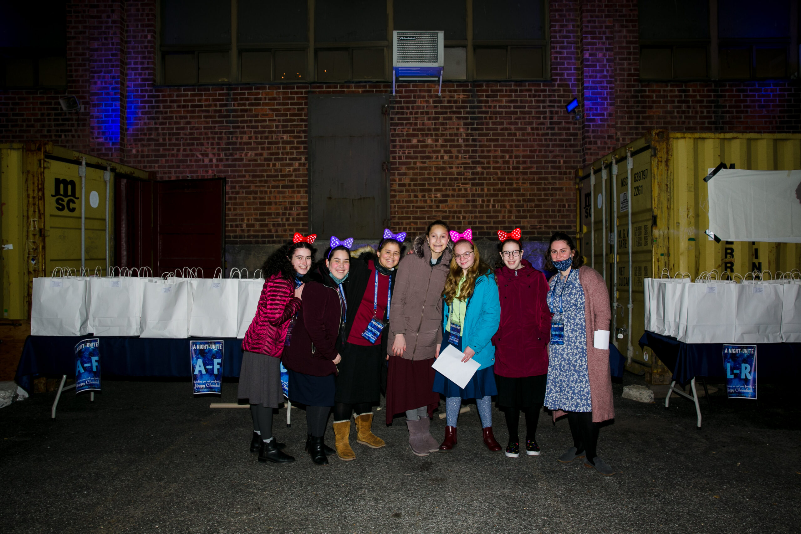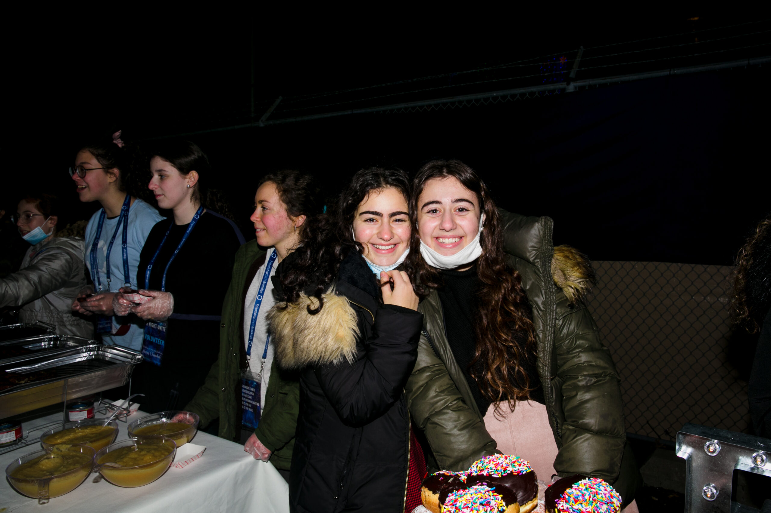 Food… it’s not Chanukah without it! FC added something new to their Chanukah party menu to keep everyone warm – a hot apple cider bar with a wide array of toppings and additions to choose from! Orders are placed for over 550 latkes and donuts each, tons of cases of water bottles and seltzer cans, hundreds of paper goods, and gallons of apple cider. More orders go out for hundreds of fun light-up headbands, glasses, and necklaces; over 700 custom FC neck gaiters and 250 crisp dollar bills for Chanukah gelt.