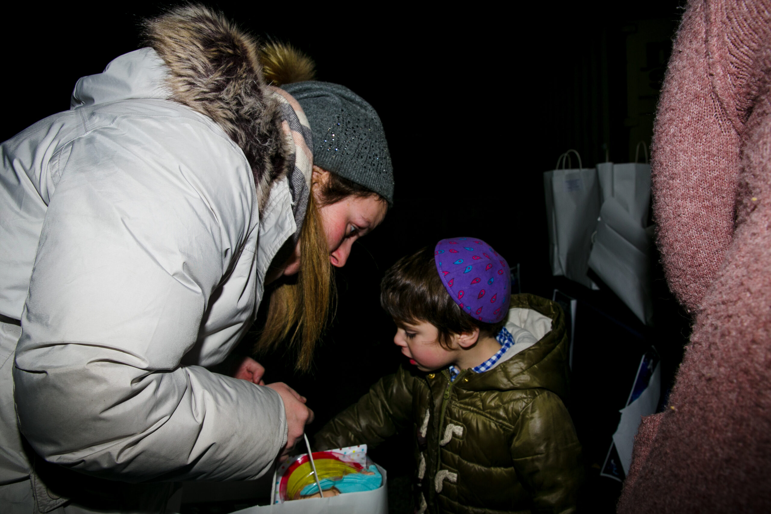 Each family walks back through the arches on their way out, where every child receives a crisp dollar bill for Chanukah gelt. Everyone leaves with a feeling of warmth that cannot be experienced anywhere else.