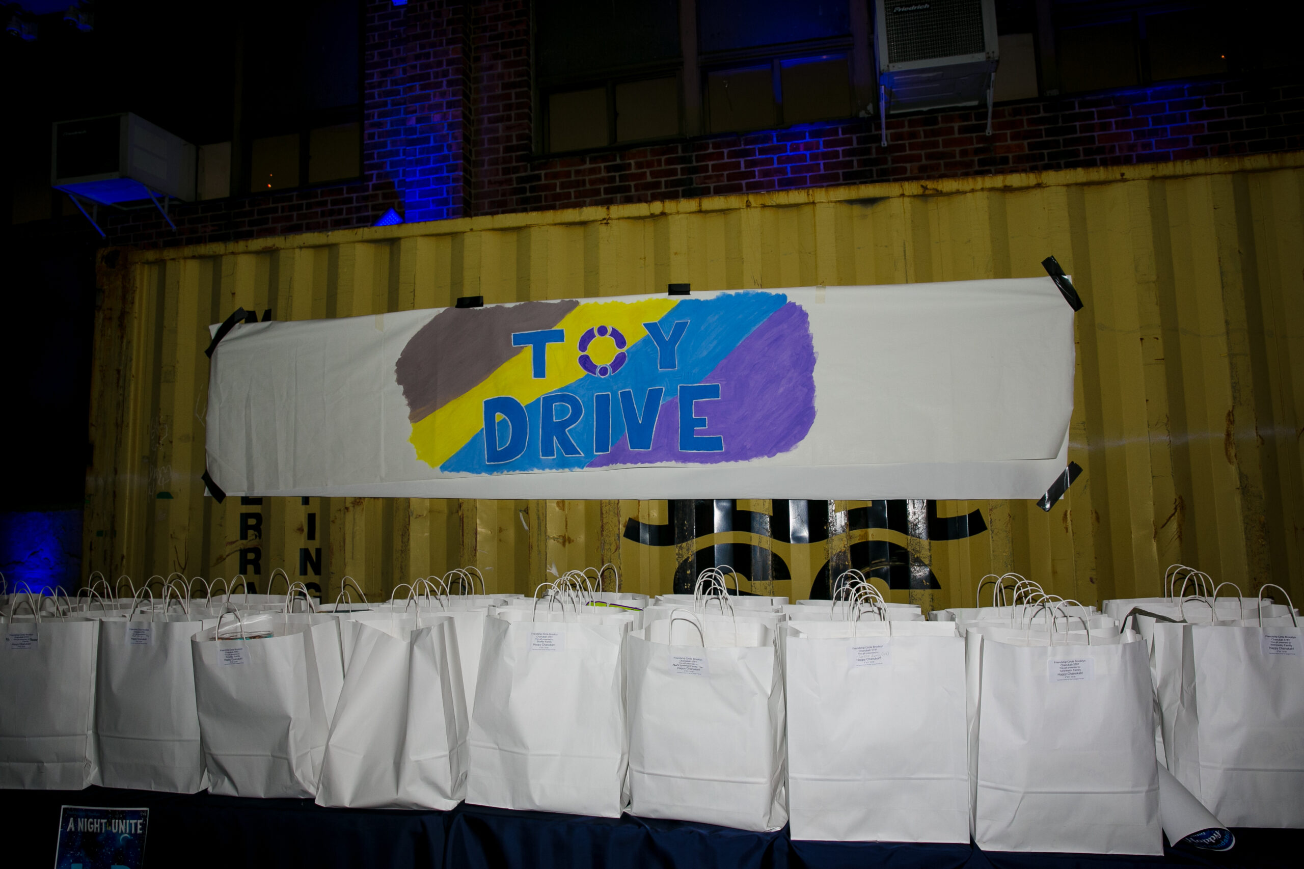 As the evening ends, families make their way to tables filled with white paper bags filled with toys and gifts. Every single toy has been purchased from FC’s Toy Drive.